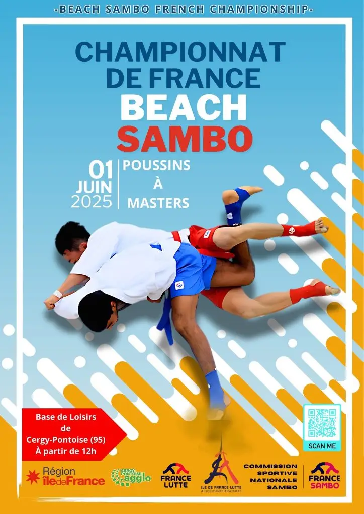 Un événement inédit arrive en Île-de-France : le Championnat de France de Beach Sambo se tiendra pour la toute première fois à la base de loisirs de Cergy-Pontoise ! Cette grande première marque une étape majeure dans le développement du Sambo en extérieur, dans une version dynamique et spectaculaire.